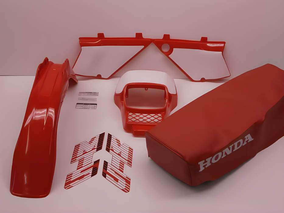 Compleet incl. bijbehorende tankstickers, witte kap stickers, witte sticker op koplampspoiler, rode zadelhoes en alle bijbehorende decal stickers.