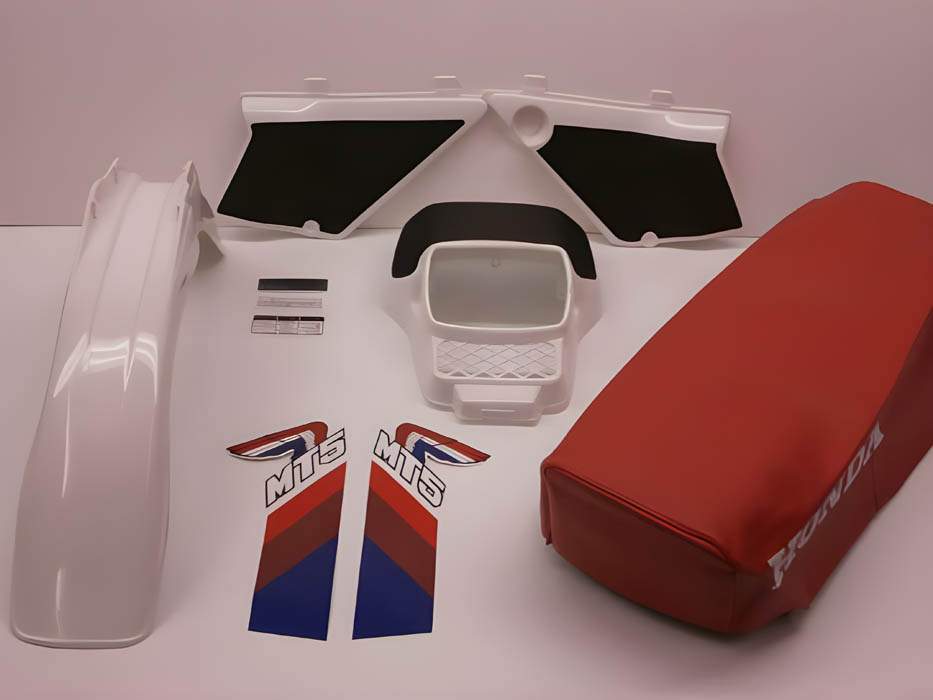 Compleet incl. bijbehorende tankstickers, zwarte kap stickers, zwarte sticker op koplampspoiler, rode zadelhoes en alle bijbehorende decal stickers.