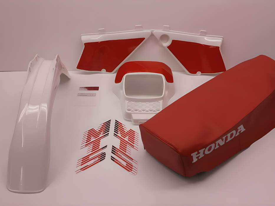 Compleet incl. bijbehorende tankstickers, rode kap stickers, rode sticker op koplampspoiler, rode zadelhoes en alle bijbehorende decal stickers.