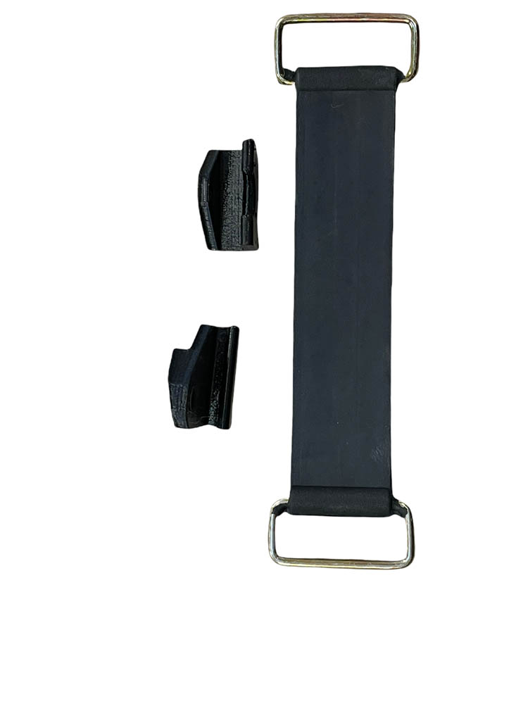 Accuklemband / accuband Honda MB / MT incl. de accuklemmetjes voor aan de bevestiging op de luchtfilterbox. Deze klemmetjes zijn vaak kapot, weg of verroest en zijn nieuw niet meer leverbaar. Wij hebben deze nu opnieuw geproduceerd van kunststof.