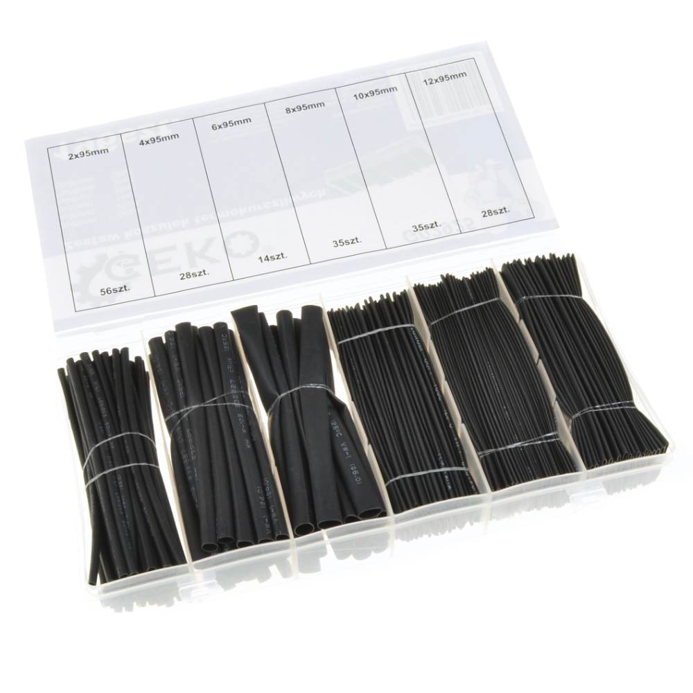 Assortimentset krimpkousen 196-delig 6 maten: 56x 2,0 mm x 95 mm 28x 4,0 mm x 95 mm 14x 6,0 mm x 95 mm 35x 8,0 mm x 95 mm 35x 10,0 mm x 95 mm 28x 12,0 mm x 95 mm zwart